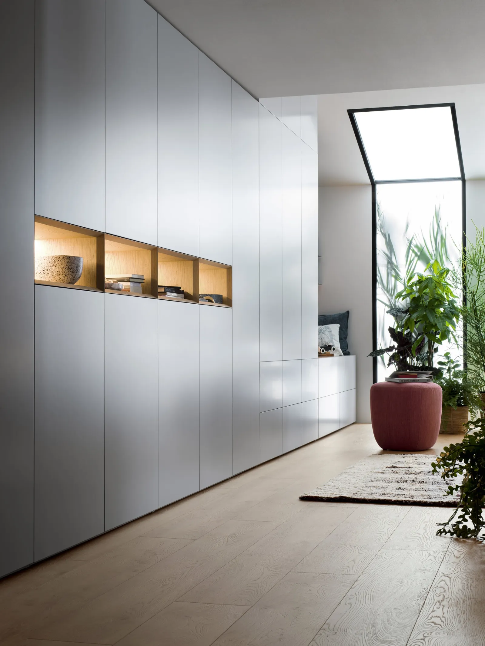 Cerchi un guardaroba in laccato opaco? Clicca e scopri armadiature a muro con ante battenti di Novamobili.