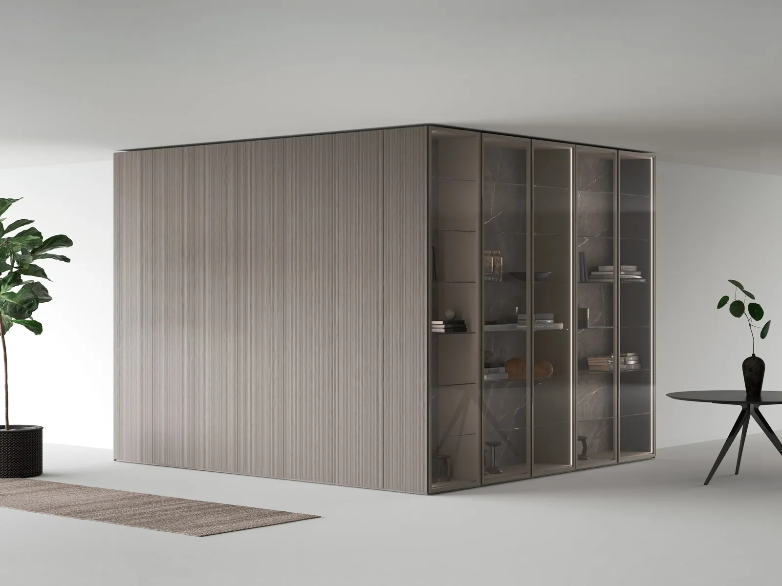Eccoti l'armadio Freedhome con angolo esterno in legno laccato di Caccaro! Una ricca gamma di armadi ad angolo con ante battenti.