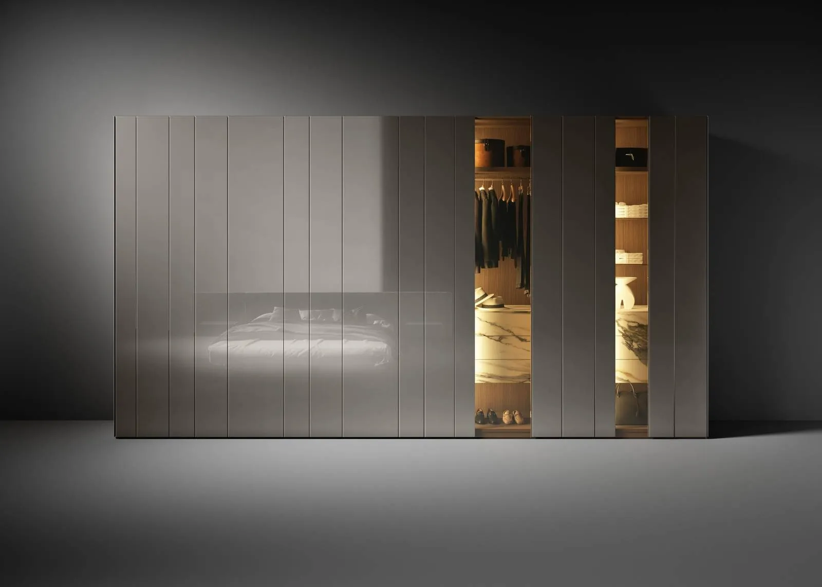 Gli Armadi a muro con ante battenti sono elementi essenziali in camera, per renderla ben arredata, pratica e completa di tutto. Per allestire perfettamente una stanza funzionale ed esteticamente gradevole, scegli le più belle soluzioni delle migliori marche, letti, armadi e comodini di alto contenuto estetico. Contattaci e ottieni informazioni sulla nostra serie di Arredamento Casa Rimini: avrai la possibilità di ultimare la camera da letto avendo a disposizione una diversificata varietà di contenitori design, come l'armadio in vetro nella fotografia.