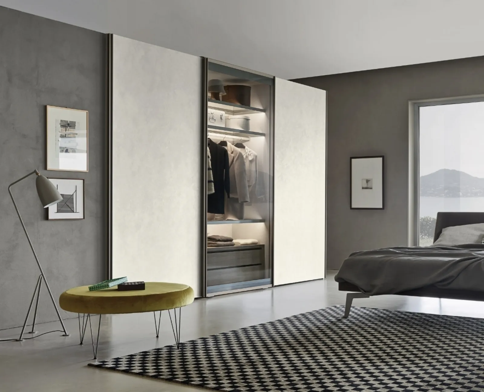 Se cerchi armadi a muro con ante scorrevoli, clicca e scopri l'armadio Scrigno Materico Scorrevole di Sangiacomo in melaminico.