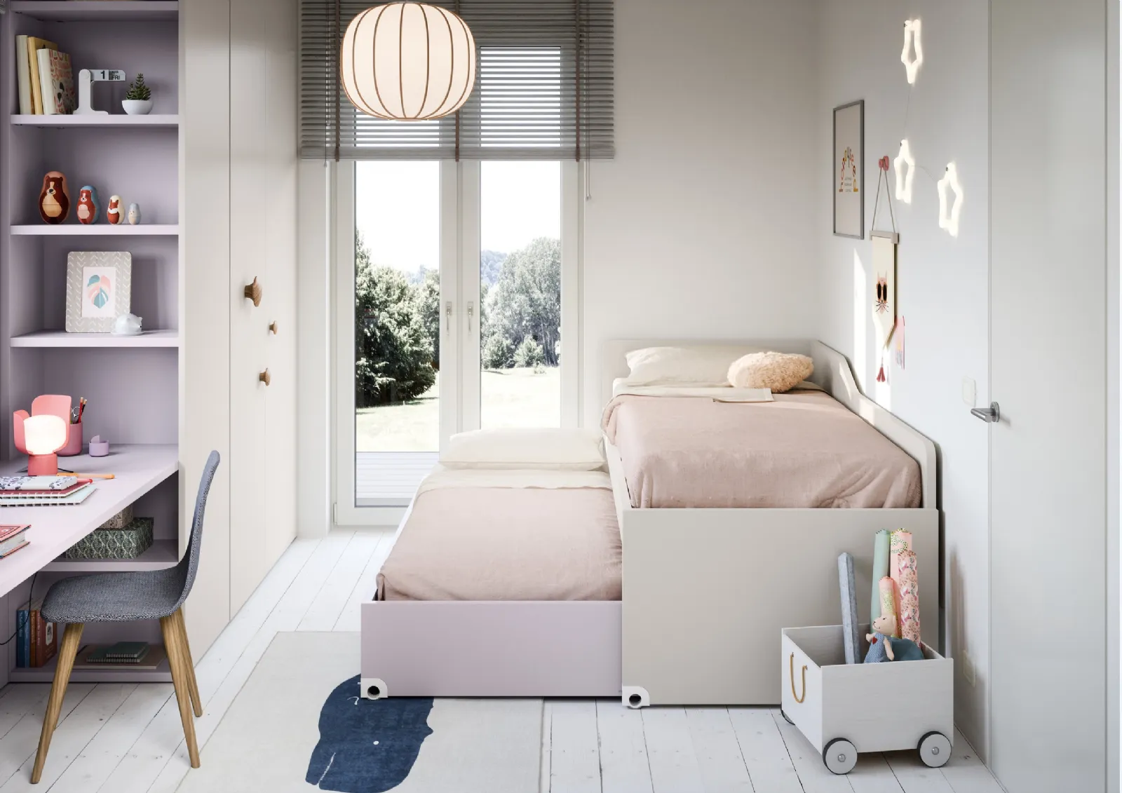 Con questa cameretta Salvaspazio Letti Rialzati Nidi, tra le soluzioni salvaspazio, potrai ammobiliare stanze moderne per bambine.