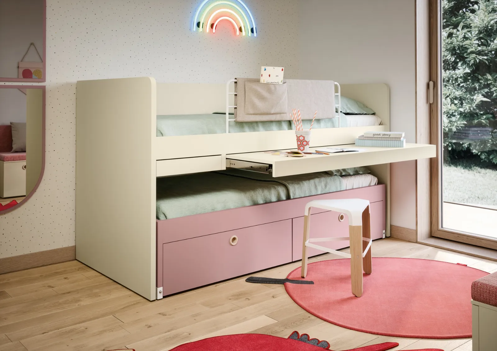 Camerette salvaspazio per bambine: scopri il modello in melaminico Salvaspazio Turca di Nidi per stanzette moderne.