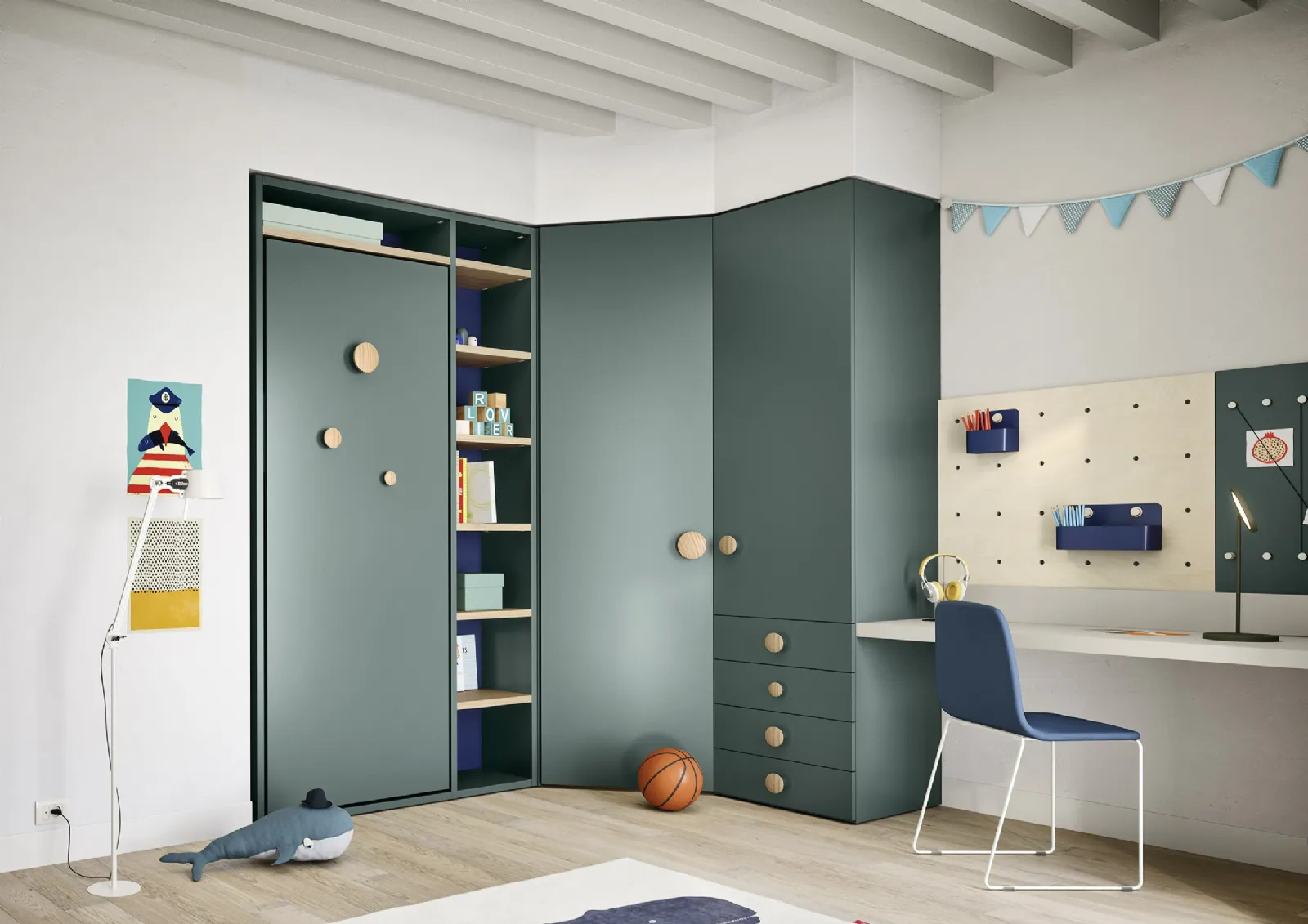 Camerette salvaspazio per bambini: scopri il modello in melaminico Salvaspazio Twiddy di Nidi per stanzette moderne.
