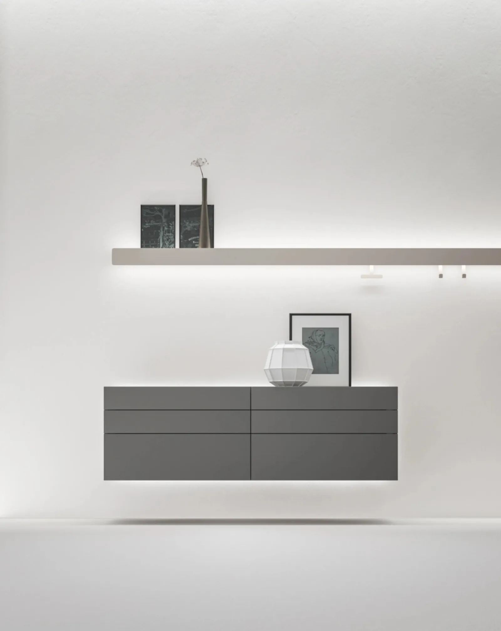 Un ricco catalogo di mobili con cassetti Caccaro: i comodini moderni in laccato opaco, come Filnox Comò sospeso, sono tra le soluzioni più originali.