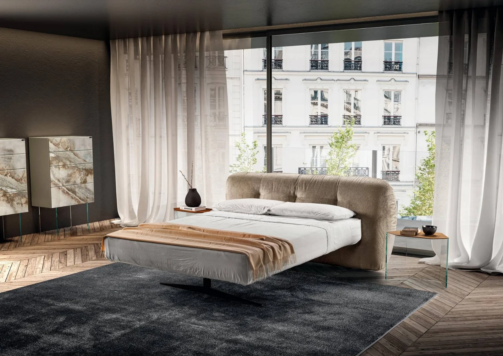 Il letto Bounty 1807 in tessuto, tra i modelli imbottiti matrimoniali design di Lago, è ideale per assicurarti il sonno più profondo.