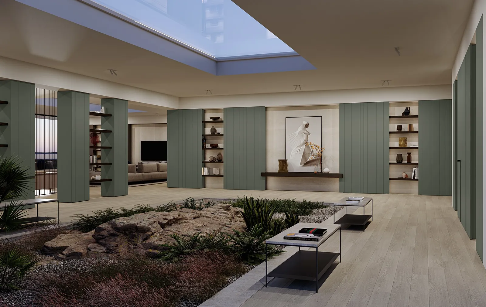 Texture di pregio e forme decise: scopri la libreria Dress Code Entrepreneur Villa di Olivieri tra le più belle Librerie design a muro.