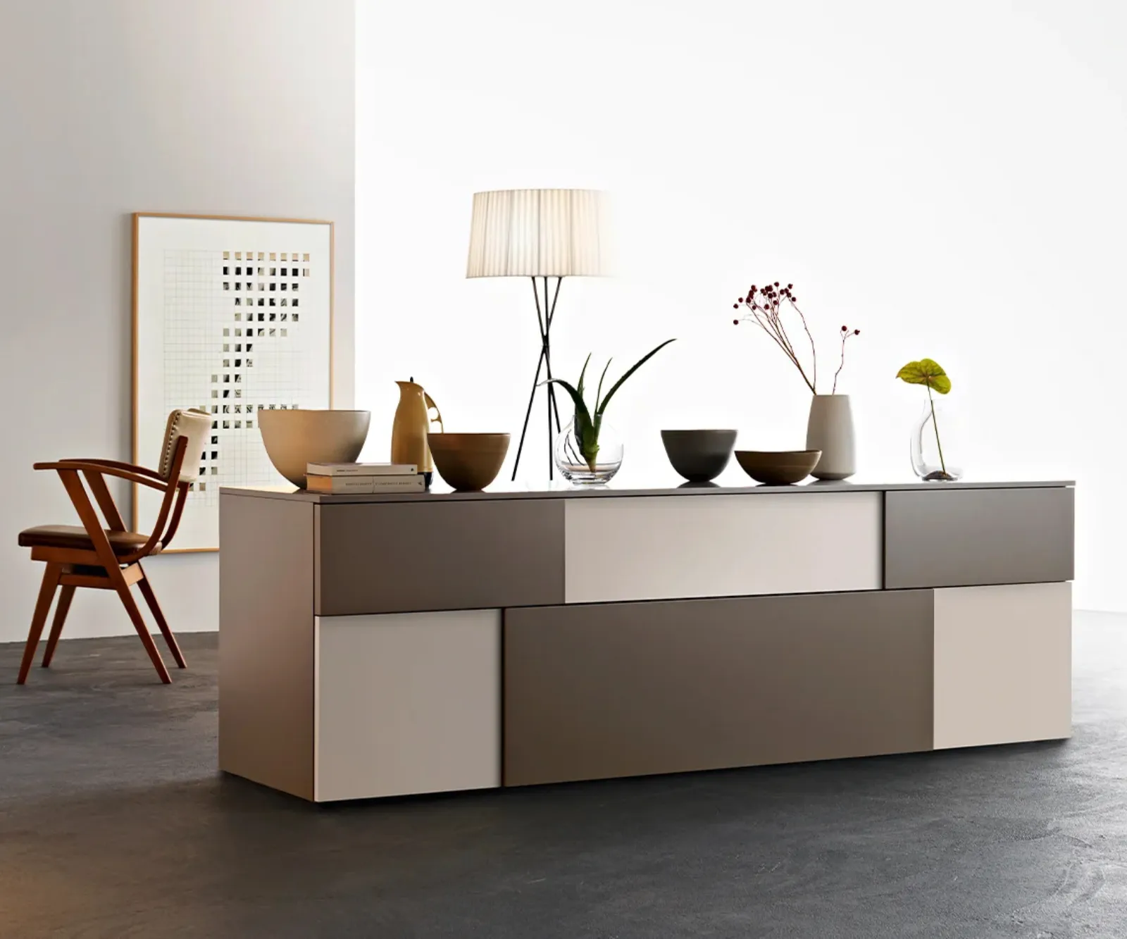 Arreda un living pratico e operativo con questa madia Incontro 03 di Sangiacomo: scopri le più esclusive Madie in laccato opaco.