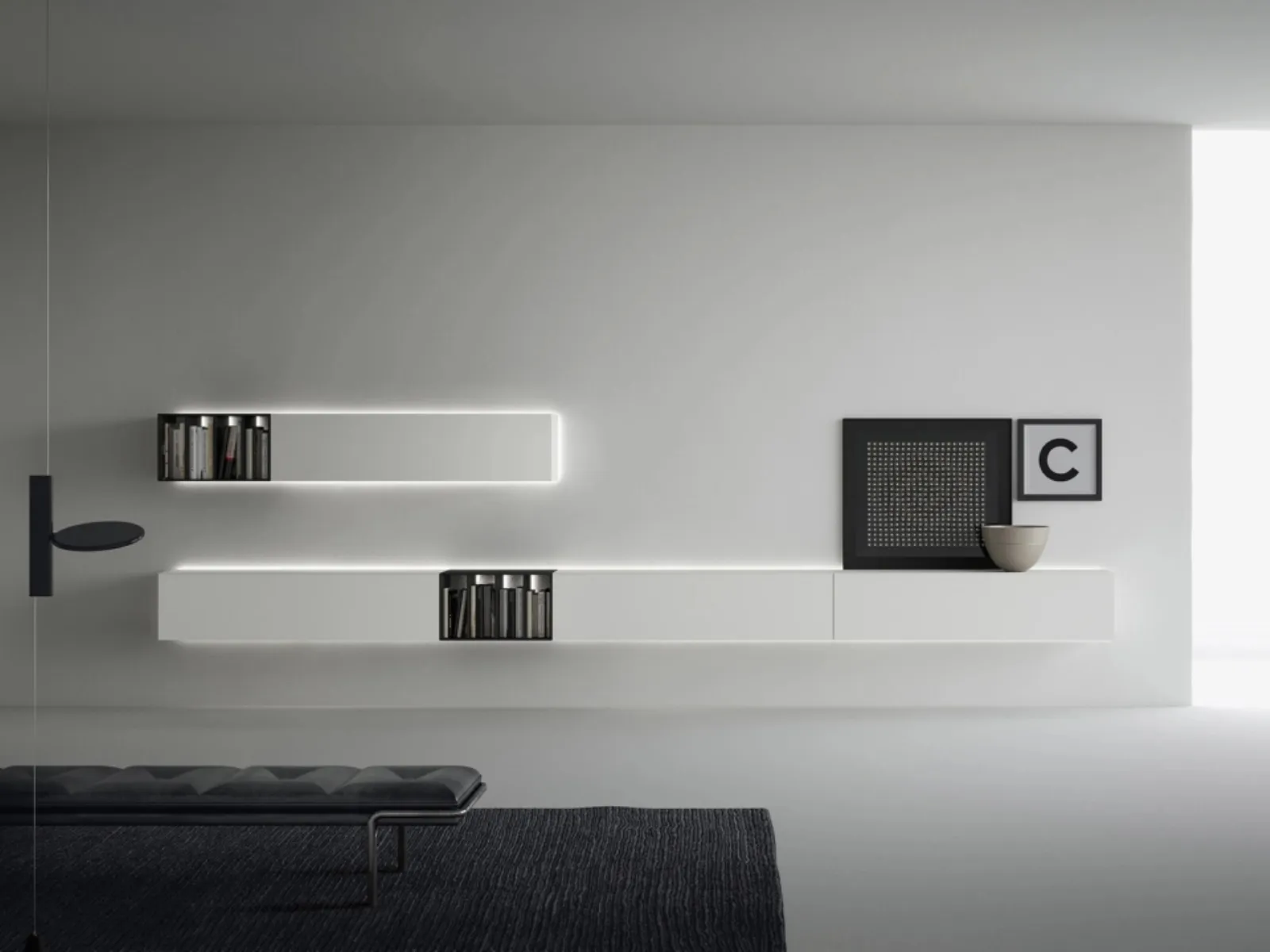 Mobili soggiorno in laccato opaco del brand Caccaro: clicca e scopri il modello Contenitore con librerie tra le più originali soluzioni per il living.