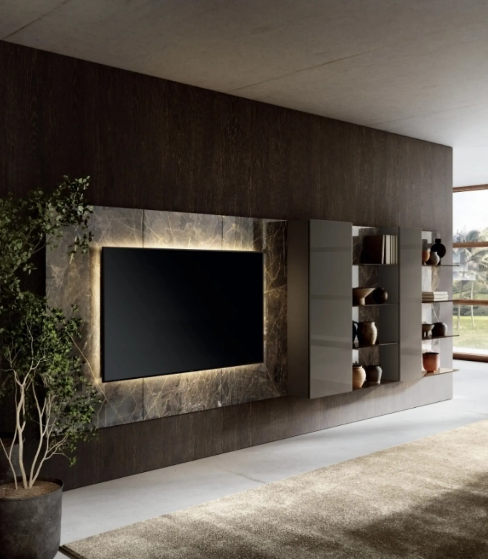 Vuoi progettare un living dinamico e operativo? Ti offriamo la parete attrezzata 36e8 2156 Lago dalle forme decise moderne.