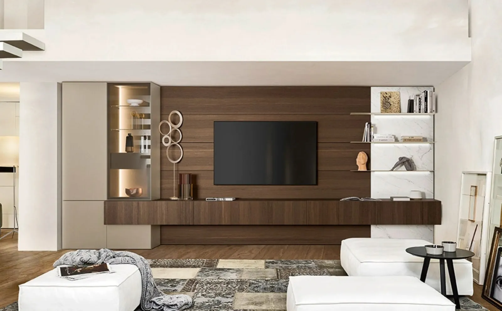 Vuoi allestire un soggiorno operativo e pratico? Ti offriamo la parete attrezzata Lampo 004 Sangiacomo dalle linee decise moderne.