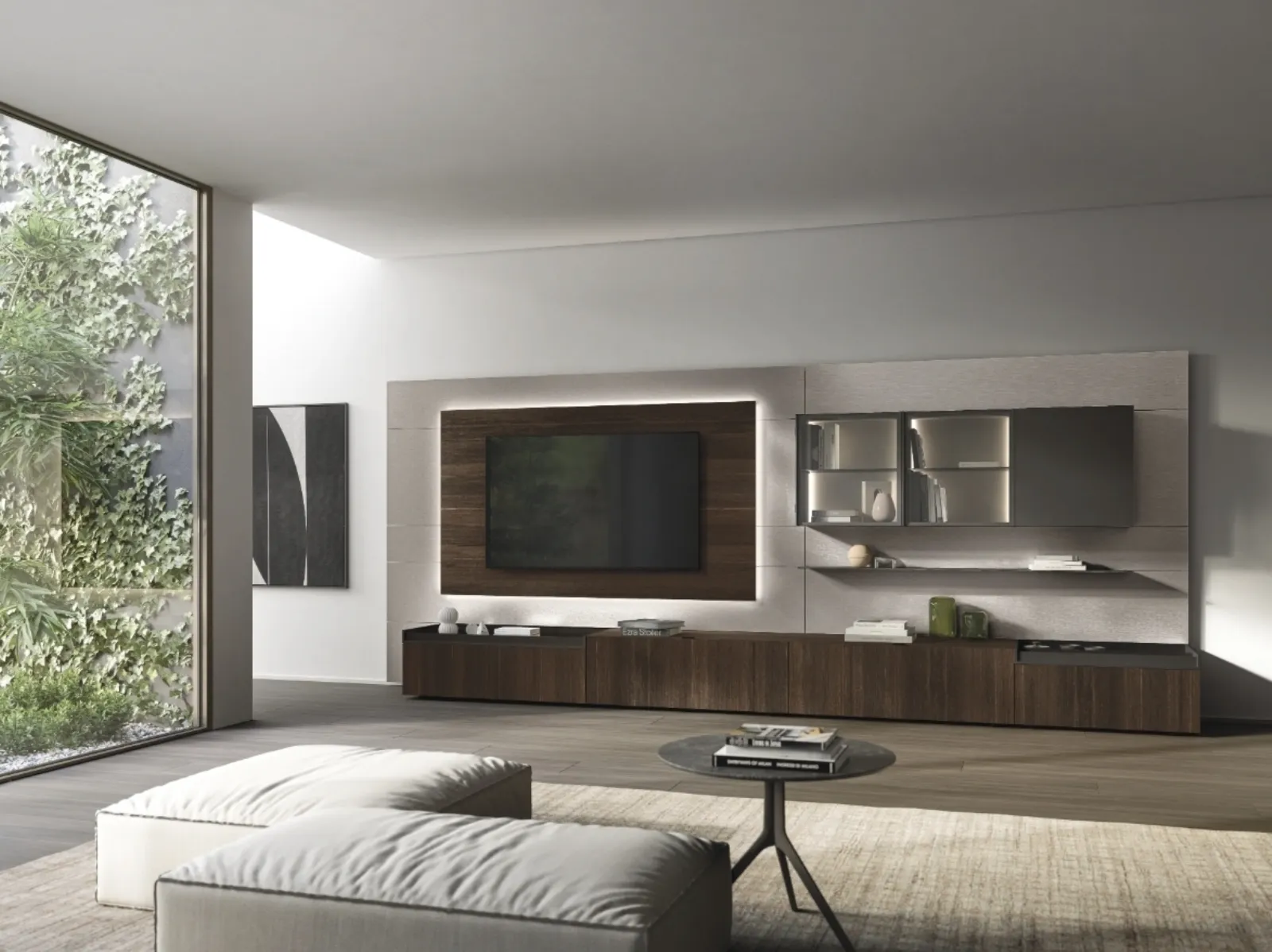Vuoi ammobiliare un living pratico e operativo? Ti presentiamo la parete attrezzata Lampo 014 Sangiacomo dalle linee decise moderne.