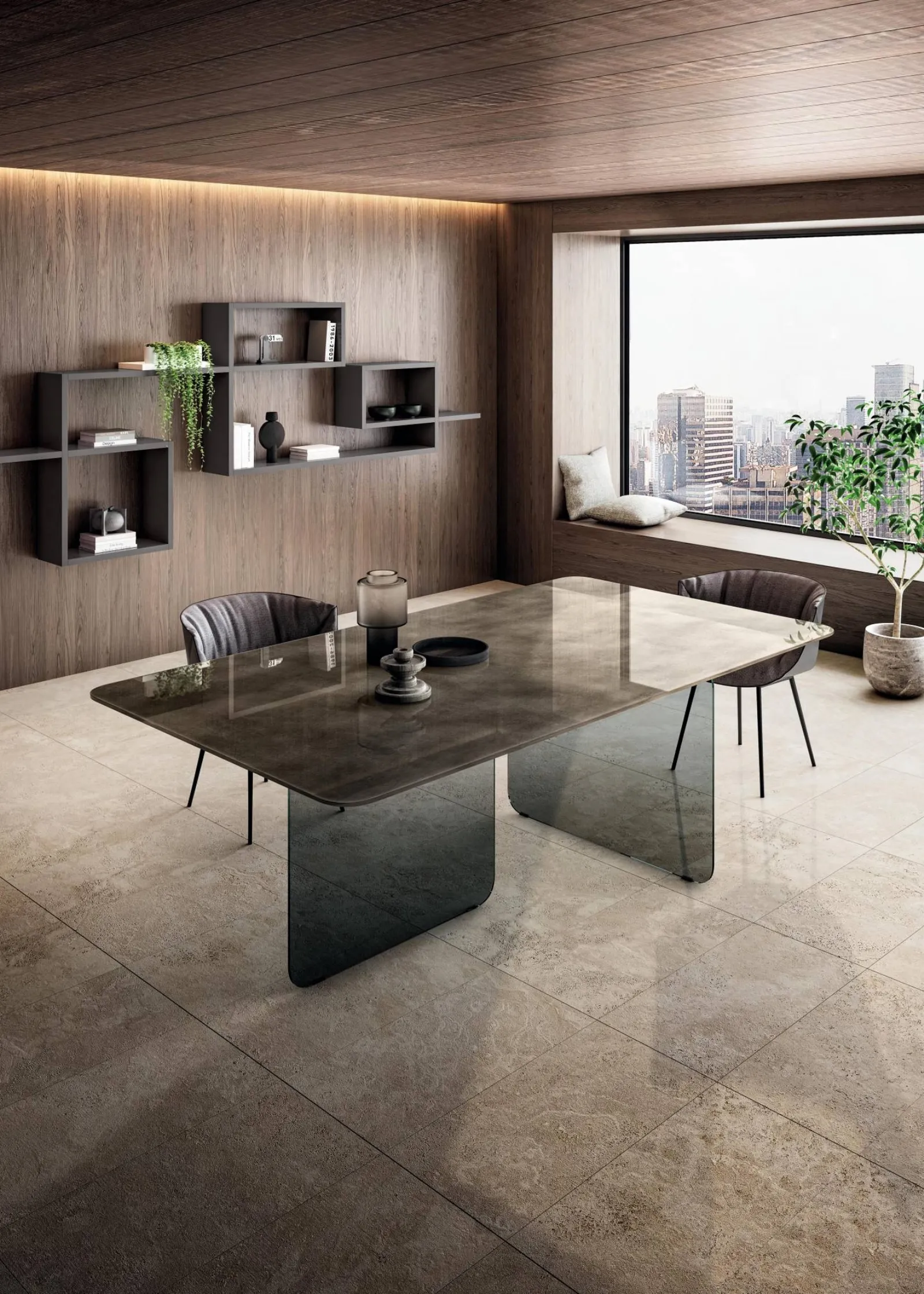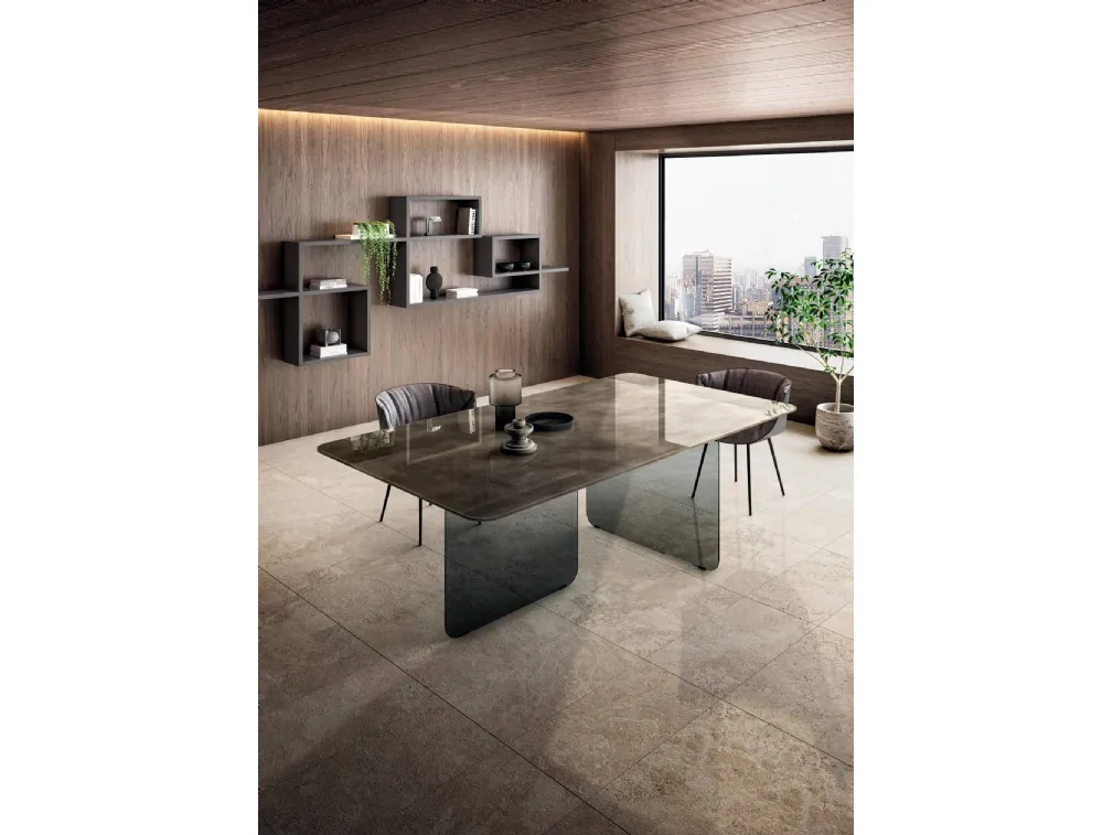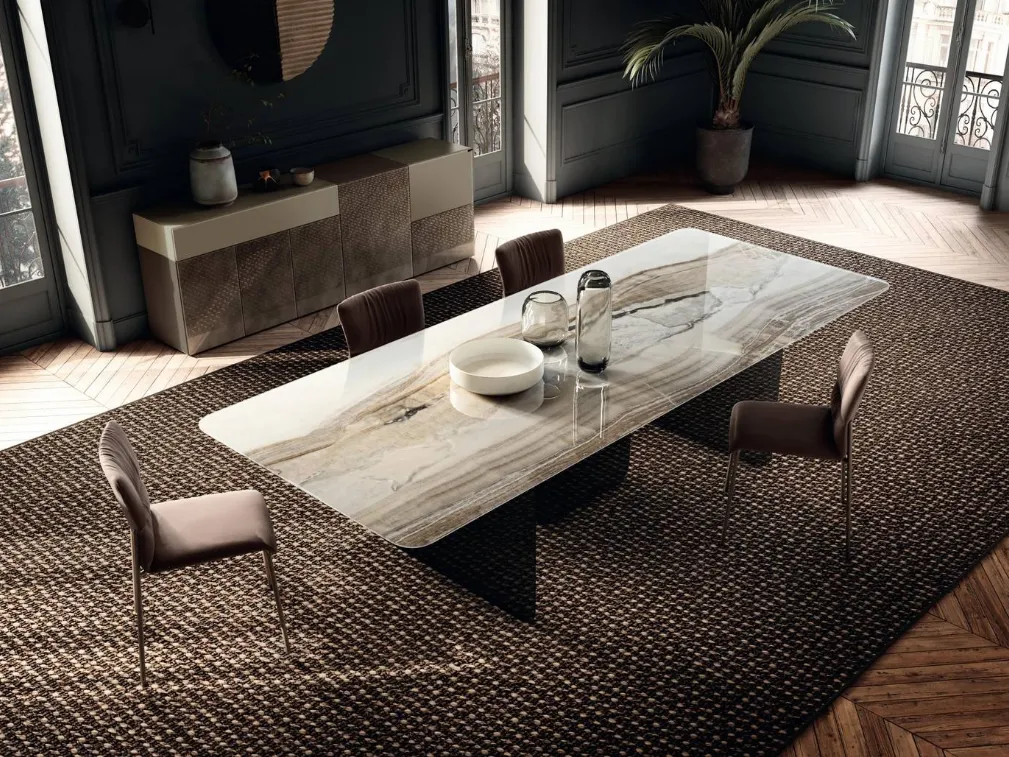 Tavolo in vetro effetto marmo Air Soft 2205X di Lago: realizzato in materiali pregiati è contraddistinto dalle forme decise del top e da un basamento ricercato ed elegante. Ideali per dare vita a degli abbinamenti unici con sedute e complementi design, i Tavoli fissi del brand sono soluzioni tra le più belle in commercio, ideali per il soggiorno e la cucina. Se sei alla ricerca di un tavolo da pranzo di alto contenuto estetico, contattaci e ricevi info e preventivi sul modello visibile in foto. Il rinomato brand Lago, leader nella realizzazione di mobili in vetro, ha scelto per la sua serie una vasta gamma di finiture, forme e tonalità. Un modello come quello in foto, in abbinamento alle giuste sedute, saprà completare il mood delle stanze di casa dedicate in assoluto all'ospitalità.