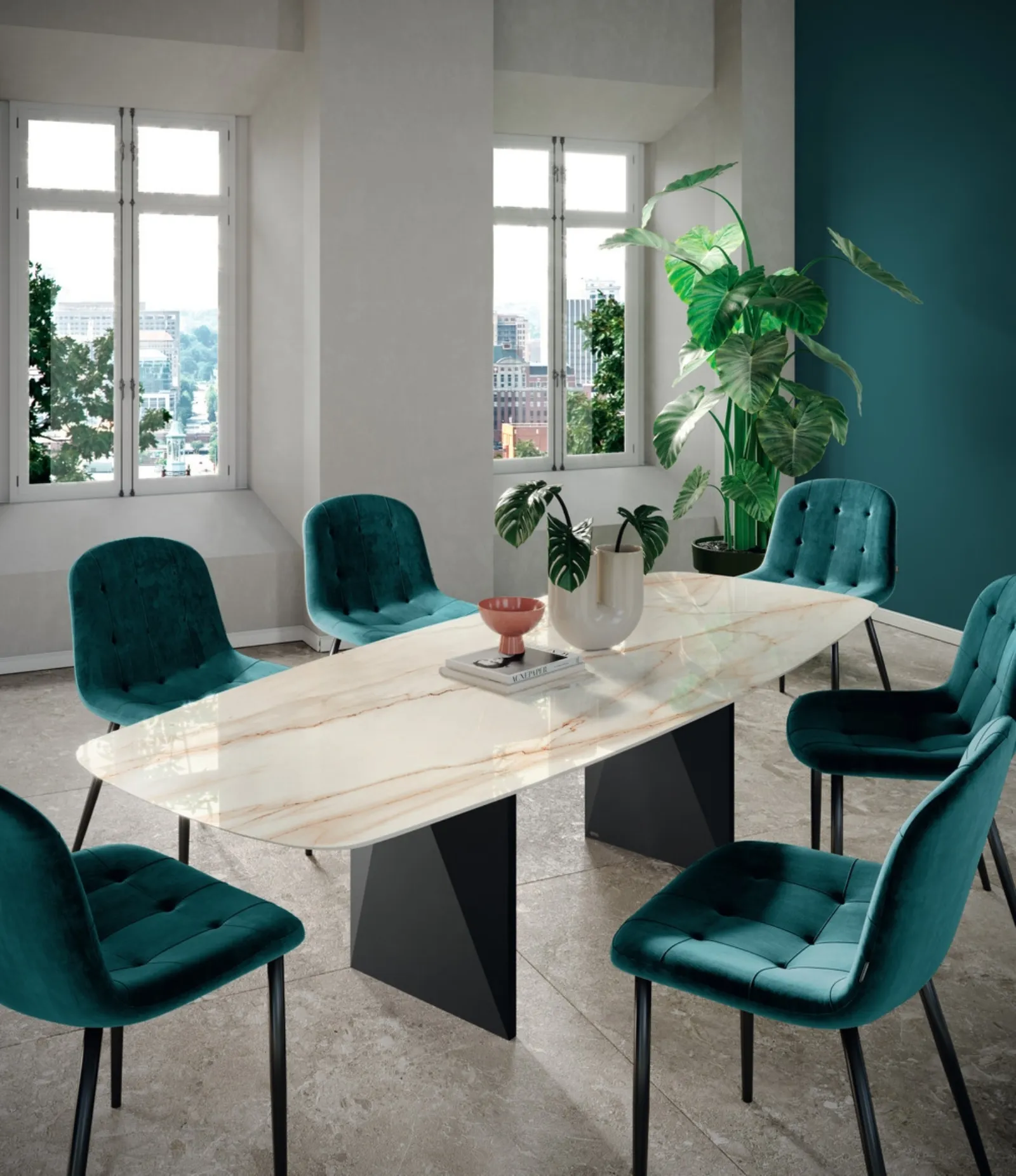 Il noto e conosciuto marchio Scavolini, specialista nella produzione di mobili in gres, ha scelto per la sua serie una vasta gamma di finiture, linee e tonalità. Se desideri un tavolo da pranzo di alto contenuto estetico, contattaci e ricevi informazioni e preventivi sul modello presente in foto. Un modello come quello nella fotografia, in abbinamento alle giuste sedute, saprà impreziosire lo stile delle stanze domestiche dedicate per eccellenza alla socializzazione. Tavolo Boston di Scavolini: realizzato in materiali di qualità è connotato dalle forme decise del top e da un basamento elegante e sofisticato. Ideali per dare vita a degli abbinamenti unici con sedute e complementi moderni, i Tavoli allungabili dell'azienda sono soluzioni tra le più belle in commercio, ideali per il living e la cucina.