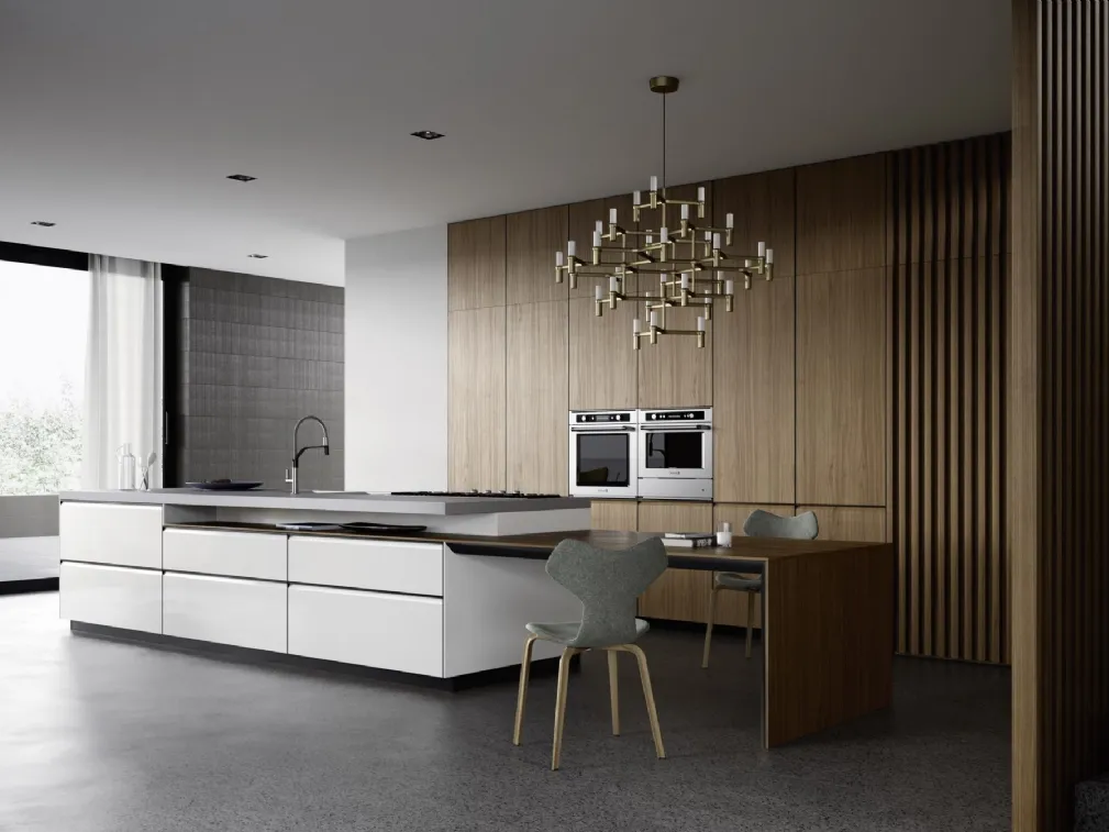Clicca e scopri un mondo di Cucine Moderne con isola: la cucina M6 Profili Artico Meson's Cucine in laccato lucido ti attende!