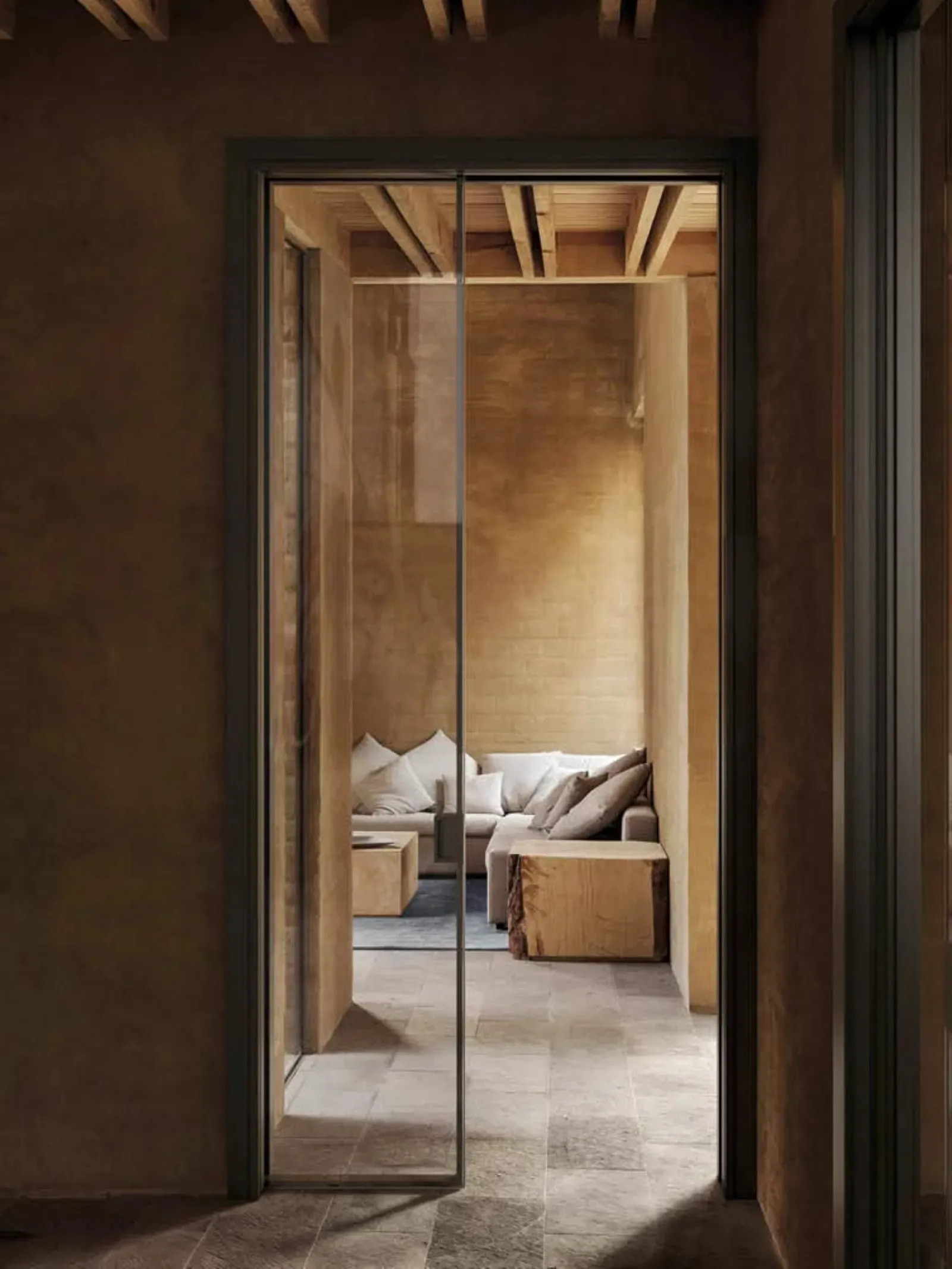 Se cerchi porte interne scorrevoli moderne, clicca e scopri il modello con telaio in alluminio Just a Scomparsa di Doal!